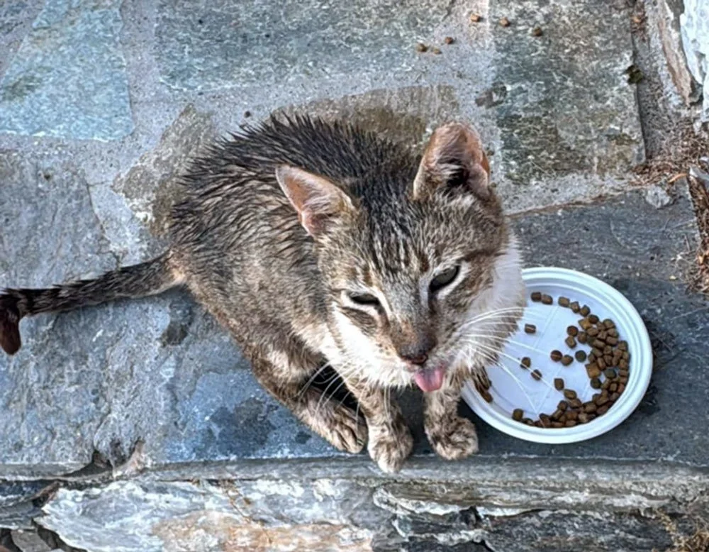 Maria, a frequent visitor from Greece, proved once again that her heart belongs to the island's cats. When she found a cat at Levrosos beach with a severe respiratory infection and a heavy cough, she didn't think twice. She gave up her swim, missed her rest, and spent her day finding a cage and transporting "Maria" (as we named the cat) to our Katapola center. Thanks to her, this sweet old soul is recovering and will return to her neighborhood healthier than ever.